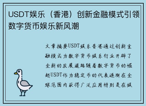 USDT娱乐(香港)创新金融模式引领数字货币娱乐新风潮